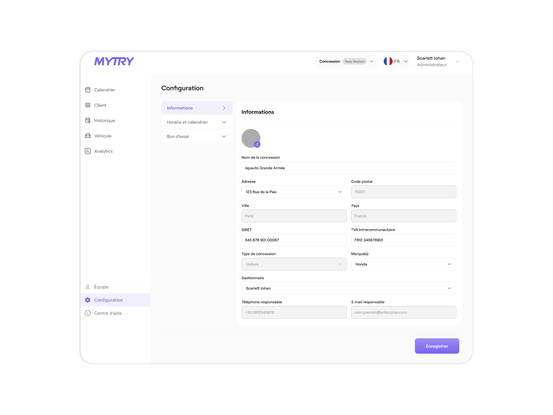 Configurez votre concession depuis un espace unique.